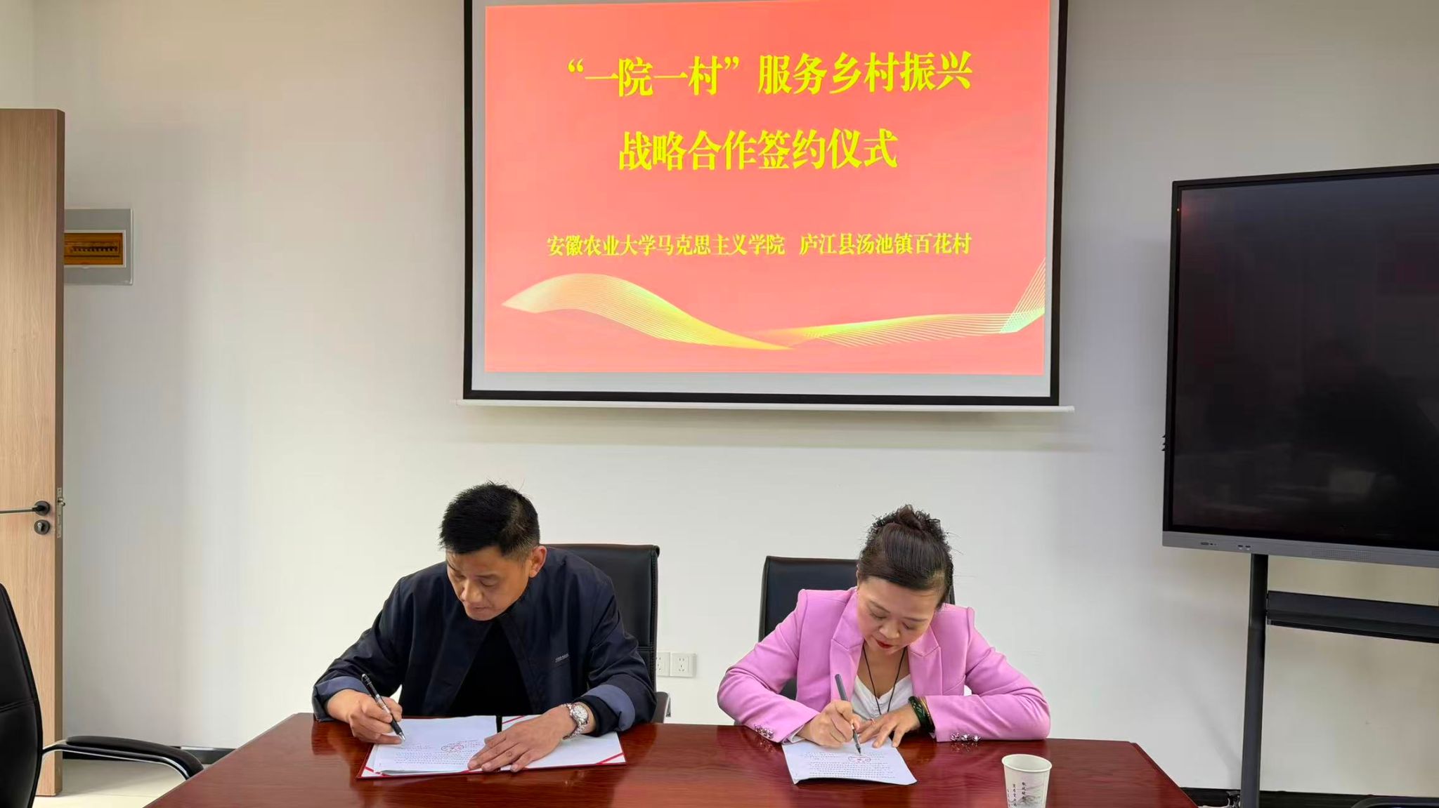 本网讯 4月14日下午,马克思主义学院组织教师赴庐江县汤池镇百花村开展“联学共建强堡垒,实践赋能促振兴”主题党日与校地共建活动。抵达百花村后,双方开展了联学座谈。与会党员共同学习《求是》杂志刊发的习近平总书记重要文章《树立和践行正确政绩观》,深刻领会以人民为中心的发展思想,与会党员代表围绕理论学习、基层治理、产业发展与思政课教学交流发言,在思想碰撞中凝聚党建引领乡村振兴的共识。随后,双方共同签署共建协议,...