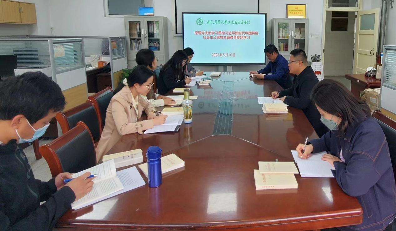 本网讯 2023年5月10日,马克思主义基本原理党支部在人文楼301会议室,召开学习贯彻习近平新时代中国特色社会主义思想主题教育专题学习会暨“学思想 悟原理”主题党日活动,会议由原理党支部书记徐玉祺主持。