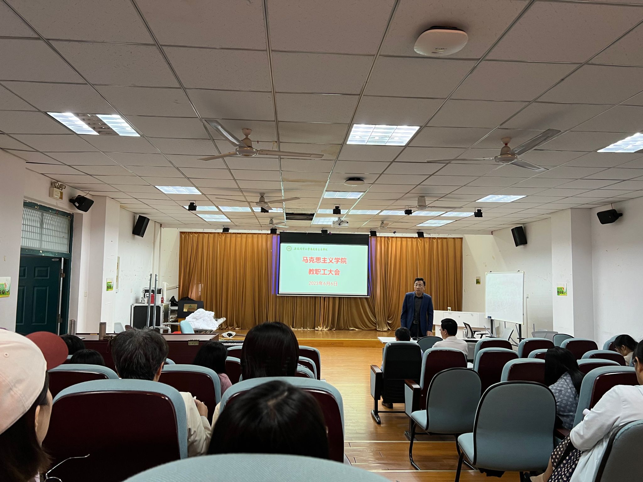 本网讯 6月6日下午,马克思主义学院在人文楼602会议室召开马克思主义学院全体教职工大会,会议由学院党委副书记、院长方国武主持,学院全体教职工参加会议。