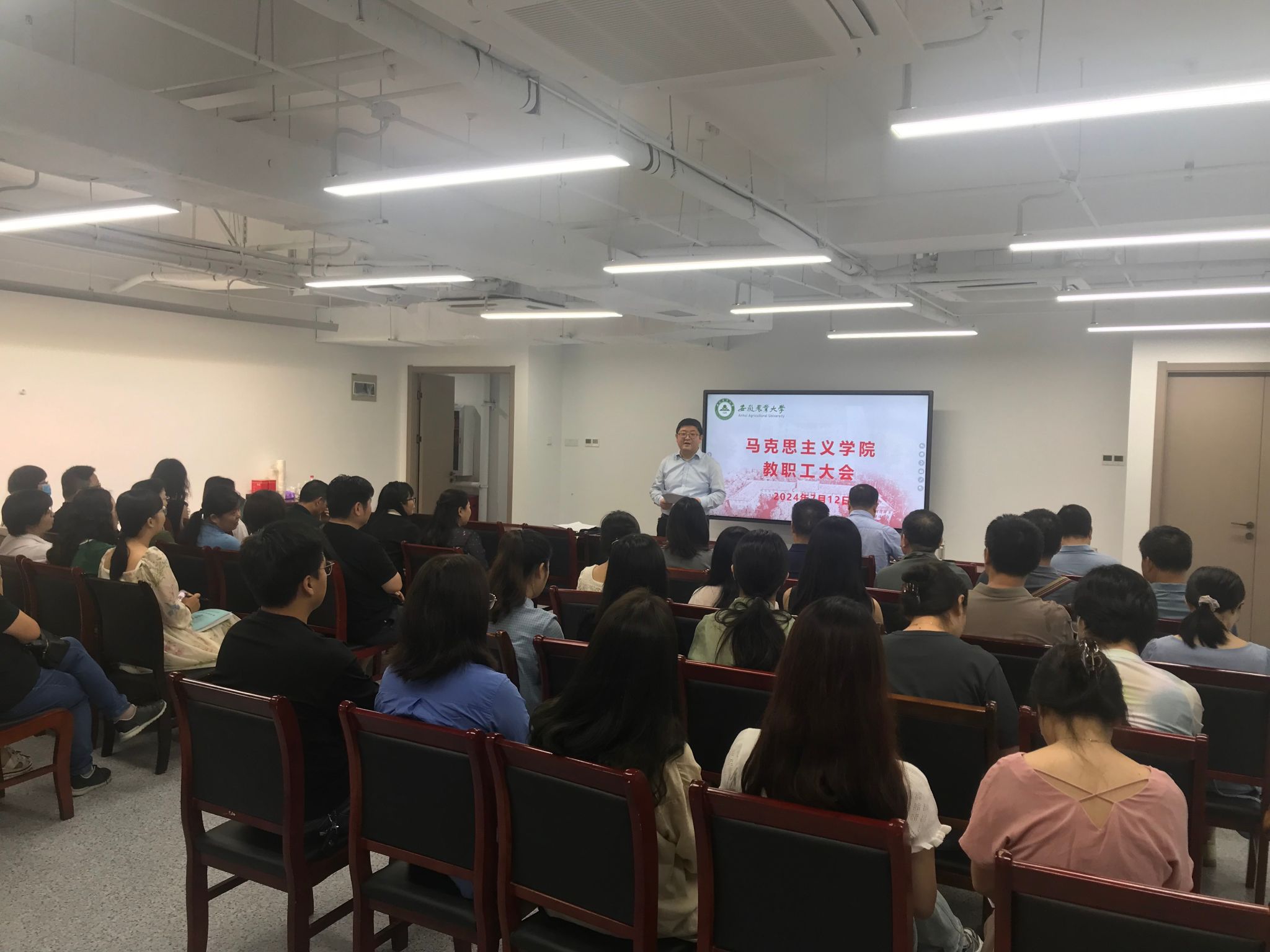 会上,校党委组织部常务副部长、院党委书记韩弥明领学了习近平总书记对学校思政课建设重要指示精神和新时代学校思政课建设推进会精神、习近平总书记关于党纪学习教育的重要讲话重要指示批示,通报了《校内外违纪违法典型案例汇编》《安徽农业大学高质量发展三年行动计划(2024—2026年)》《关于开展2024年师德师风建设专项整治督导检查工作的通知》,并就学院抓好相关工作的贯彻落实进行了强调,要求全体教职工深入学习贯彻习近平总书记对学校思政课建设作出的重要指示精神,积极巩固党纪学习教育成果,严格请销假等各项制度,抢抓机遇、群策群力,守正创新推动思政课建设内涵式发展,在“办大办好办强安徽农大”指示要求中找准学院的发展方位、个人的成长坐标。