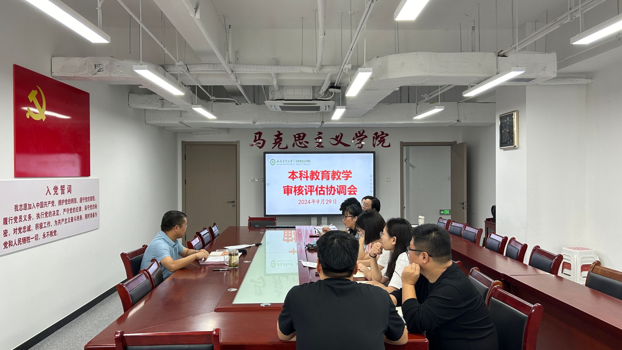 本网讯 2024年9月30日上午,为进一步推进本科教育教学审核评估工作的深入开展,我院召开本科教育教学审核评估工作协调会,学院审核评估工作组成员参加会议,院党委副书记袁修雨主持会议。