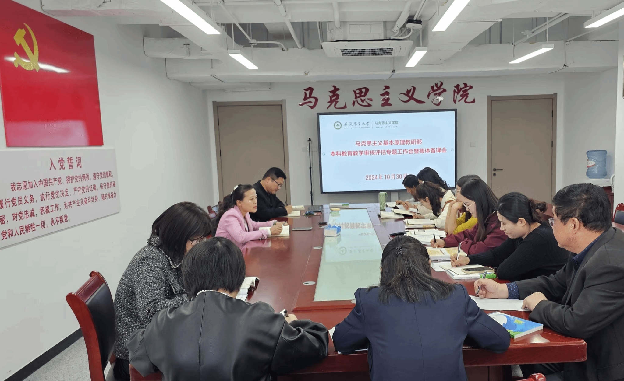 本网讯 为扎实推进学院本科教育教学审核评估工作,10月30日,马克思主义基本原理教研部在1010会议室召开本科教育教学审核评估专题工作会暨集体备课会,会议由教研部主任徐玉祺主持。