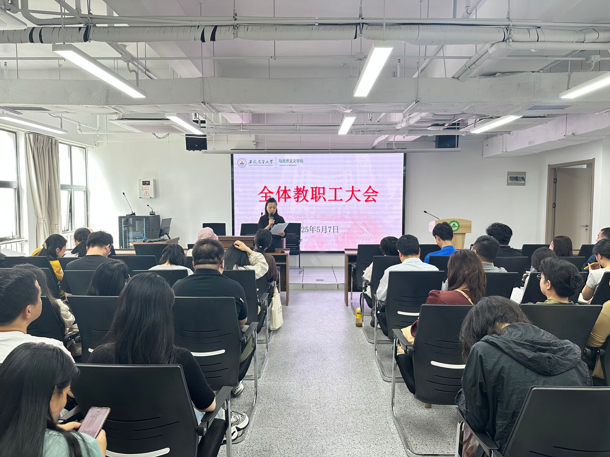 本网讯 5月7日下午,学院在1009会议室召开教职工大会,推动深入贯彻中央八项规定精神学习教育、学院学科建设等走深走实。学院党政领导和全体教职工参加。
