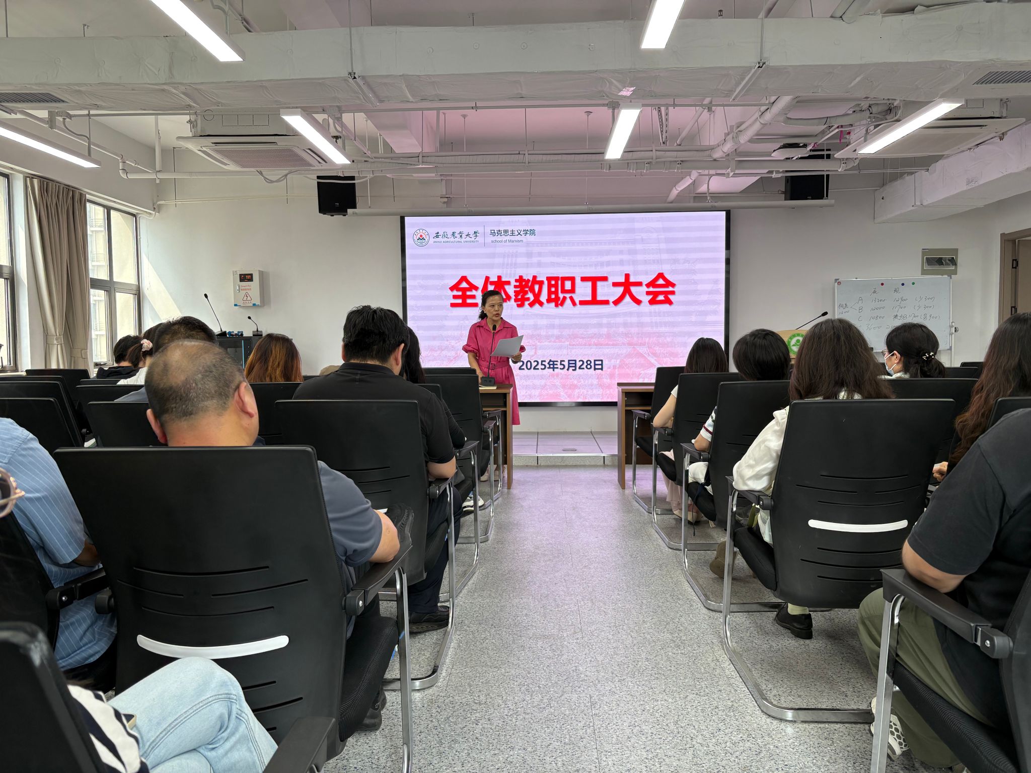 本网讯 5月28日下午,学院在1009会议室召开教职工大会,推动深入贯彻中央八项规定精神学习教育、教学科研各项工作走深走实。学院党政领导和全体教职工参加。