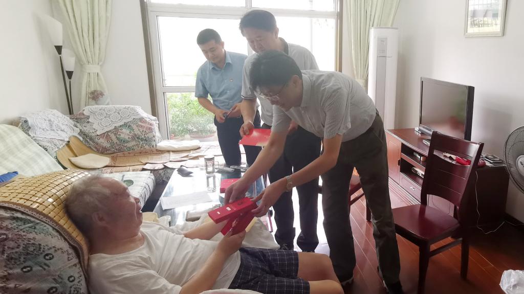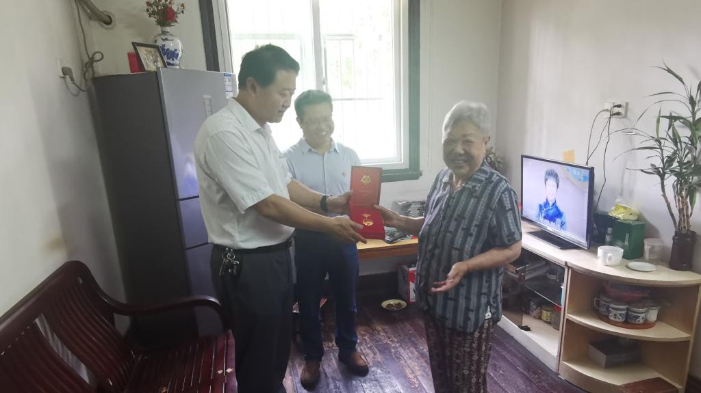 6月28日,党委常委、副校长韩军代表学校向我院退休老党员余茂笈老先生颁发“光荣在党50年”纪念章。6月30日,学院党政领导来到退休老党员张玉屛老师家,向张老师颁发“光荣在党50年”纪念章。6月30日,学院总支书记黄洪雷在蜀山烈士陵园学院主题党日活动现场向退休老党员刘雪英老师颁发“光荣在党50年”纪念章。(通讯员:裴顺)