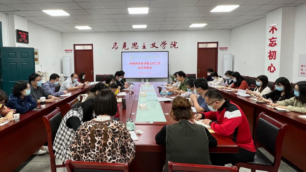 本网讯 4月27日下午,马克思主义学院召开全体教师大会,就师德师风专项整治月工作以及近期重点工作进行动员部署,院党委书记、院长黄洪雷主持会议。院党委副书记、纪委书记、副院长袁修雨以及全院教师参加会议。