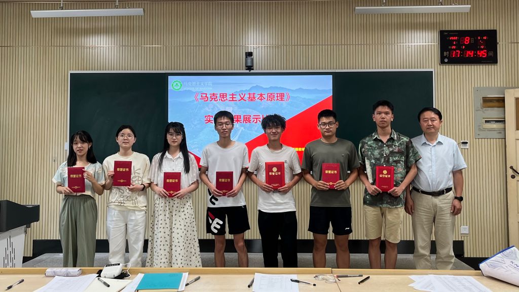 “马克思主义基本原理”实践作品展示中,7名同学获得一等奖, 15名同学获得二等奖,40名同学获得三等奖。“毛泽东思想和中国特色社会主义理论体系概论”实践作品展示中,9名同学一等奖,17名同学获二等奖,25名同学获三等奖。
