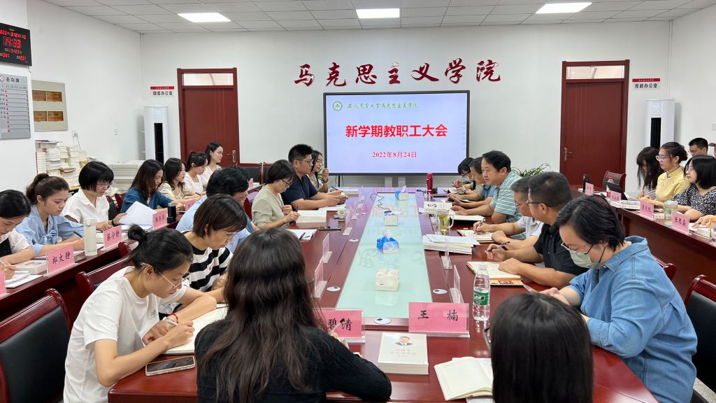本网讯 8月24日下午,马克思主义学院召开教职工大会,部署新学期开学工作,开展本学期第一次集体政治理论学习。院党委书记、院长黄洪雷主持会议,全体教职工参加会议。