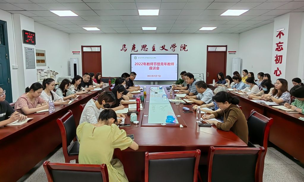 本网讯 为庆祝第38个教师节,着力加强青年教师队伍建设,9月7日下午,马克思主义学院召开教师节暨青年教师座谈会,院党委书记、院长黄洪雷,院教学督导组成员、各党支部书记、教研部(中心)主任、全体青年教师参加座谈会。座谈会由院党委副书记、纪委书记、副院长袁修雨主持。