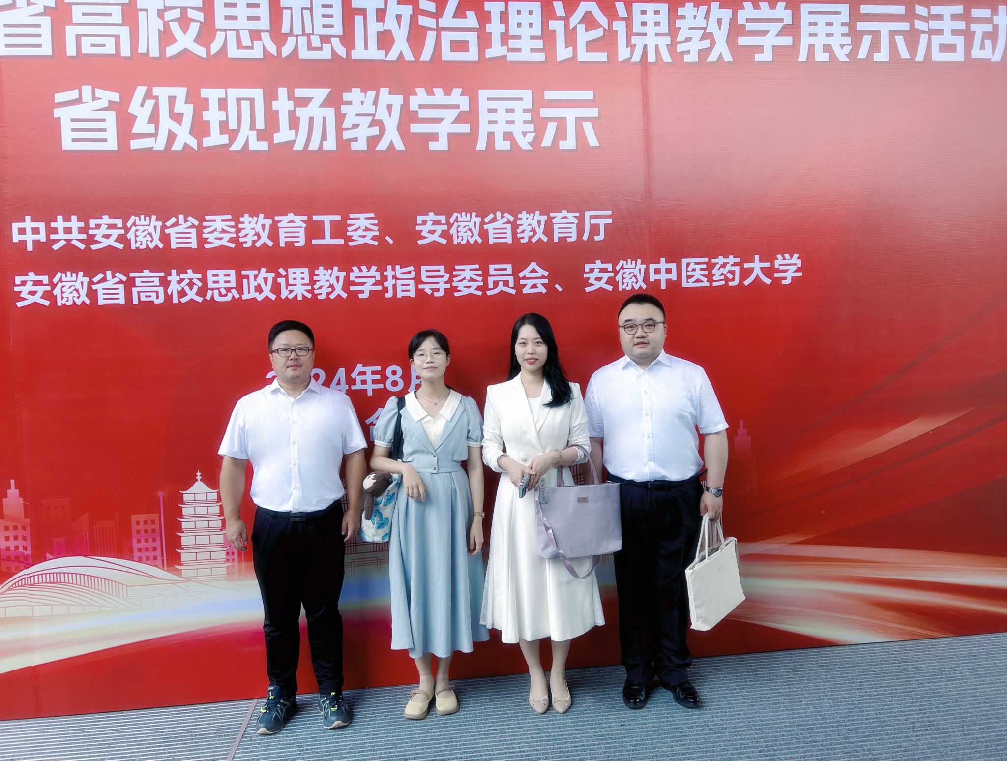 本网讯 8月7日至8日,2024年度全省高校思想政治理论课教学展示活动省级现场教学展示在安徽中医药大学举行。我院4位老师入选省级现场教学展示,经过激烈的角逐,徐玉祺老师获中国马克思主义与当代”(研究生组)二等奖;岳蕾老师获“思想道德与法治”(本科组)二等奖,费强老师获“形势与政策”(本科组)二等奖,张思嘉老师获“马克思主义基本原理”(本科组)三等奖。