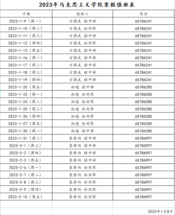 马克思主义学院2023年寒假值班表