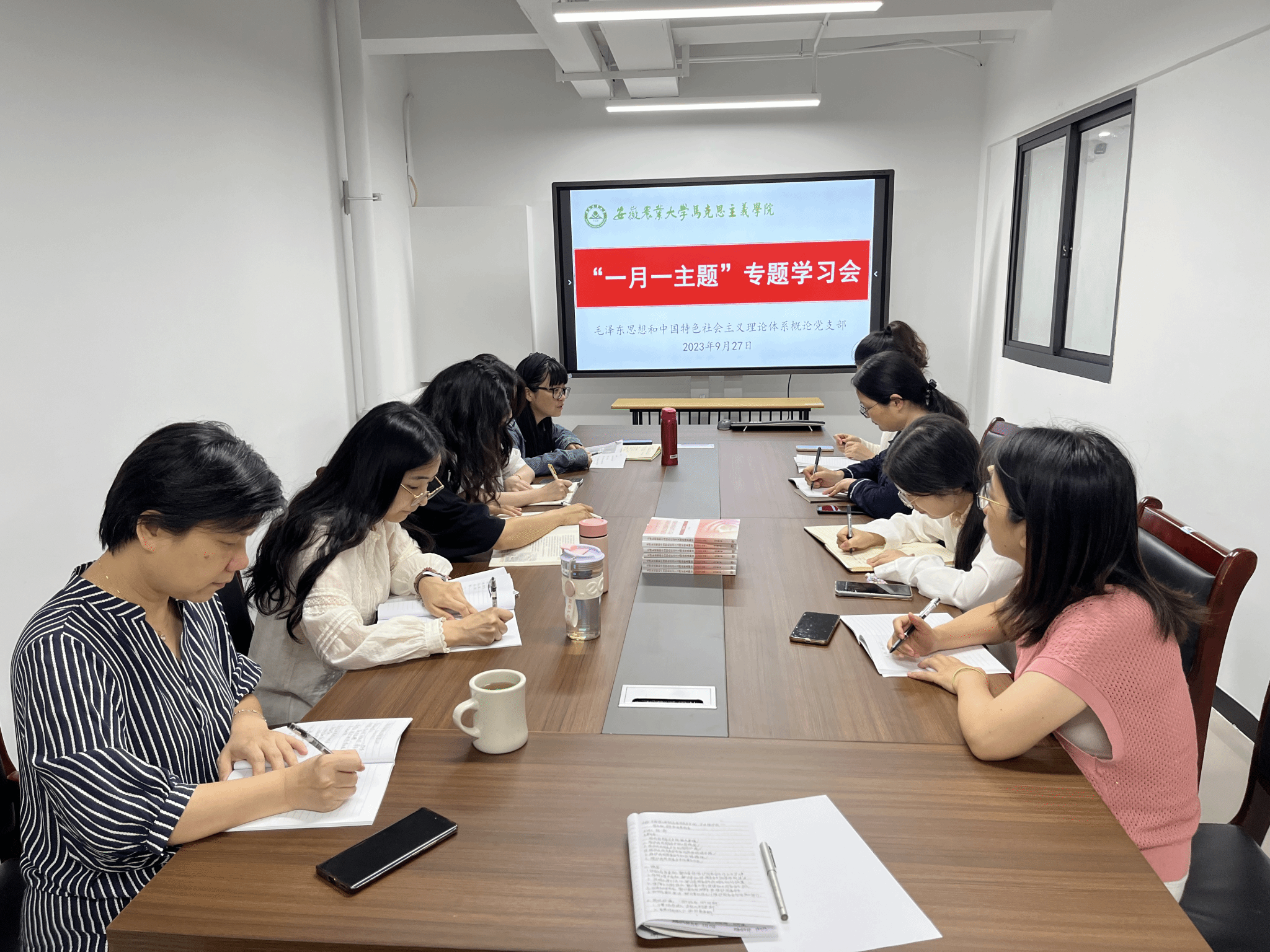 本网讯 为深入学习贯彻党的二十届三中全会精神,9月27日,毛泽东思想和中国特色社会主义理论体系党支部开展一月一主题专题学习会,党支部全体党员参加,会议由党支部书记周丽主持。