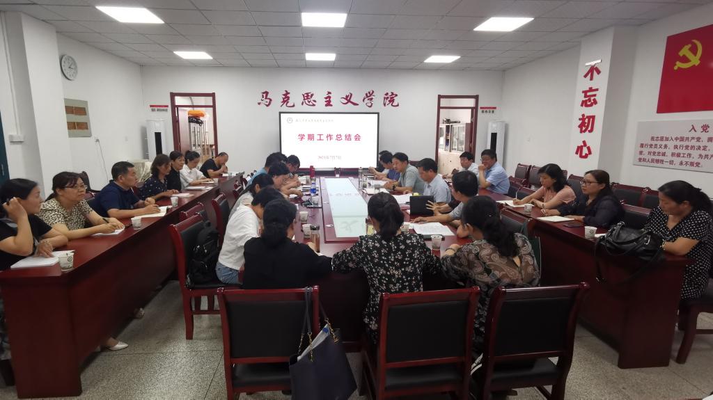 本网讯 7月7日下午,马克思主义学院在学院会议室召开学期工作总结会并就党史学习教育开展书记讲党课活动。学院全体教师参加会议,学院党总支书记、院长黄洪雷就学院本学期工作进行总结,对暑期和下学期工作进行部署,并就习近平总书记“七一”重要讲话精神进行专题党课宣讲。会议由学院副书记、副院长袁修雨主持。