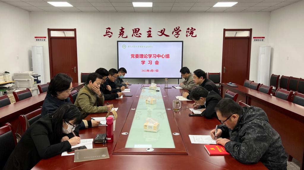 本网讯 4月13日下午,马克思主义学院召开党委理论学习中心组学习会,院党委书记、院长黄洪雷主持会议。院党委副书记、纪委书记、副院长袁修雨,院党委委员、各党支部书记参加了学习。