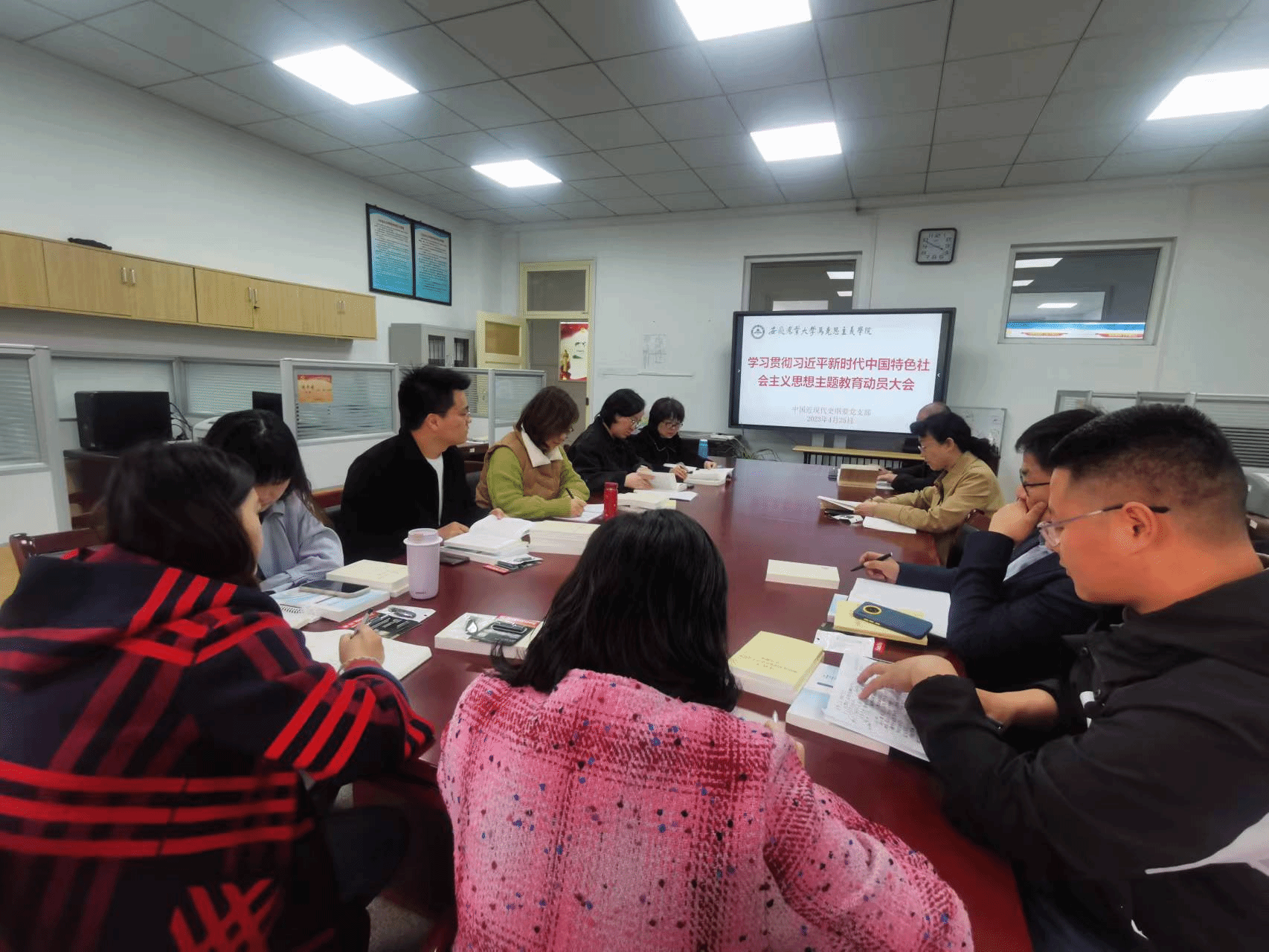 本网讯 为进一步扎实抓好主题教育,推动学习贯彻习近平新时代中国特色社会主义思想走深走实,4月25日,中国近现代史纲要党支部在人文楼303室召开学习贯彻习近平新时代中国特色社会主义思想主题教育动员会。党支部部分教师参加了此次会议,会议由党支部书记颜莉主持。