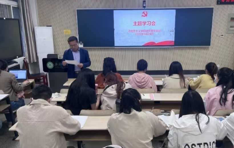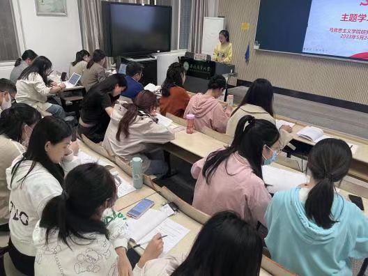 本网讯 为深入开展学习贯彻习近平新时代中国特色社会主义思想主题教育,524日晚上18:30马克思主义学院研究生第一、第二、第三党支部在人文楼101举行主题教育学习会暨考博经验分享会。本次活动由马克思主义学院党委副书记、纪委书记、副院长袁修雨主持,研究生第一党支部书记张思嘉、研究生第二党支部书记孙刘琴、马克思主义学院研究生党支部全体党员、入党积极分子参加。