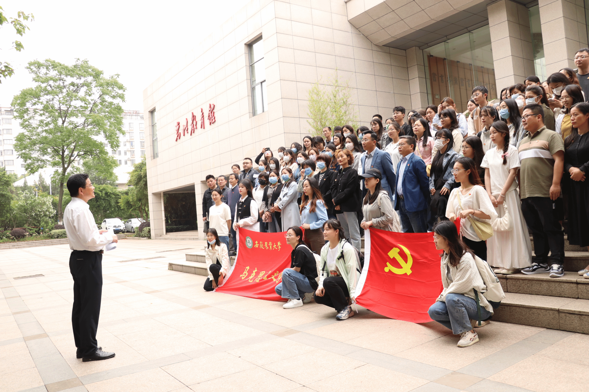 参观结束后,院党委书记孙超带领党员重温入党誓词,并对本次活动作出总结。孙超指出,通过本次参观学习,各位党员同志要更加系统地学习党的历史,强化自身党性修养,将学习成果转化为真抓实干,在实践中融会贯通。随后,孙超传达并领学师德师风十大原则,要求教师应当严守师德底线,规范自身职业行为,不断提高政治站位,强化责任担当。
