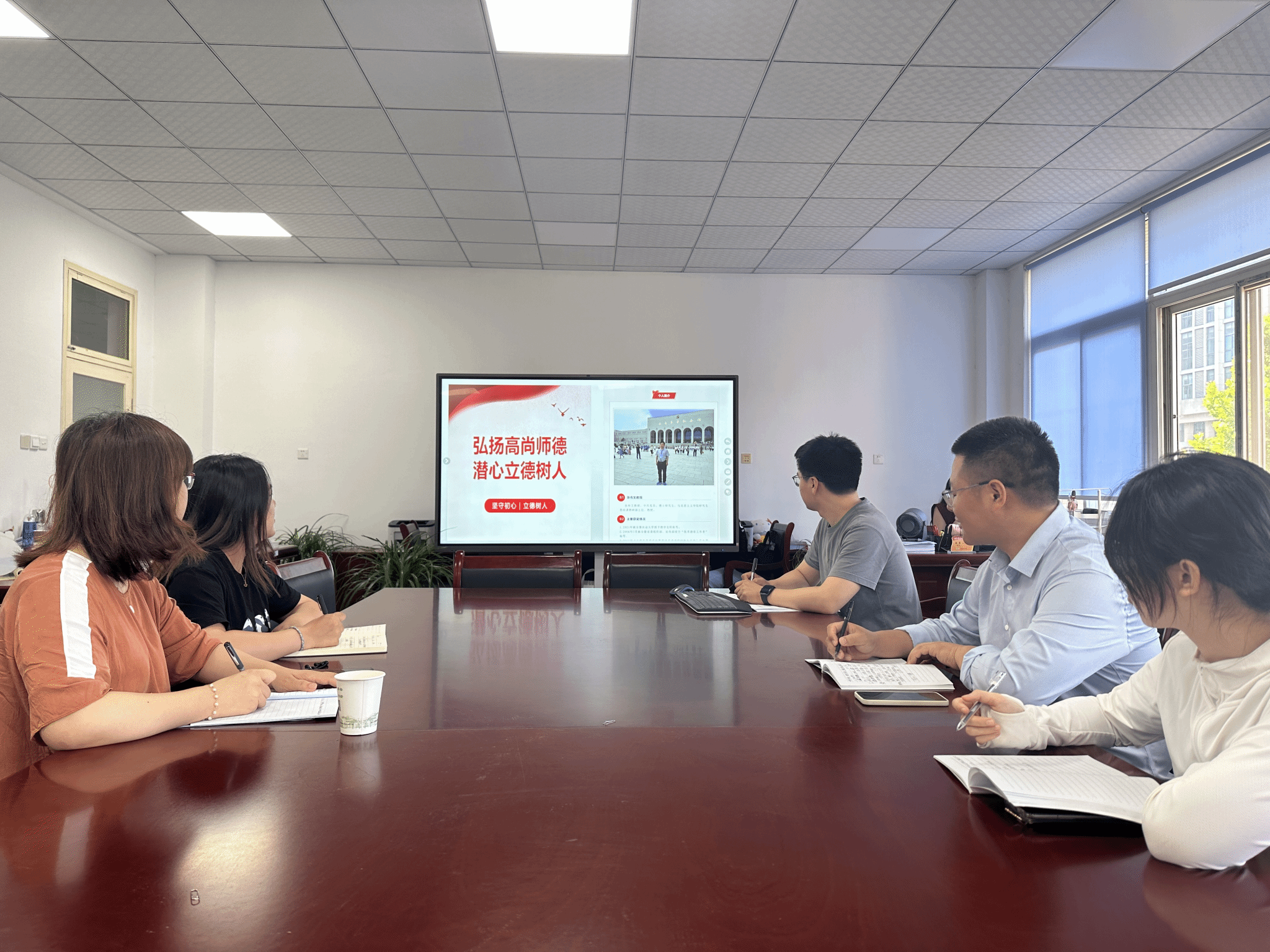 与会教师集中学习了师德典型人物张传文教授《坚守初心 立德树人》的事迹。张传文教授自2000年入职安徽农业大学以来,担任专职思政课教师23年,被安徽农业大学评为“教学名师”,被安徽省委组织部、宣传部授予“优秀德育工作者”,在教学、科研上均作出了重要贡献。