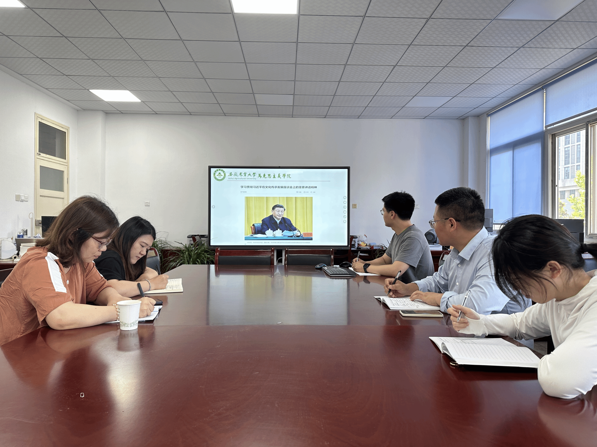 本网讯 6月26日,中国近现代史纲要党支部在人文楼310室召开学习贯彻习近平新时代中国特色社会主义思想主题教育专题学习会。党支部部分教师参加了会议,会议由党支部副书记李春梅主持。