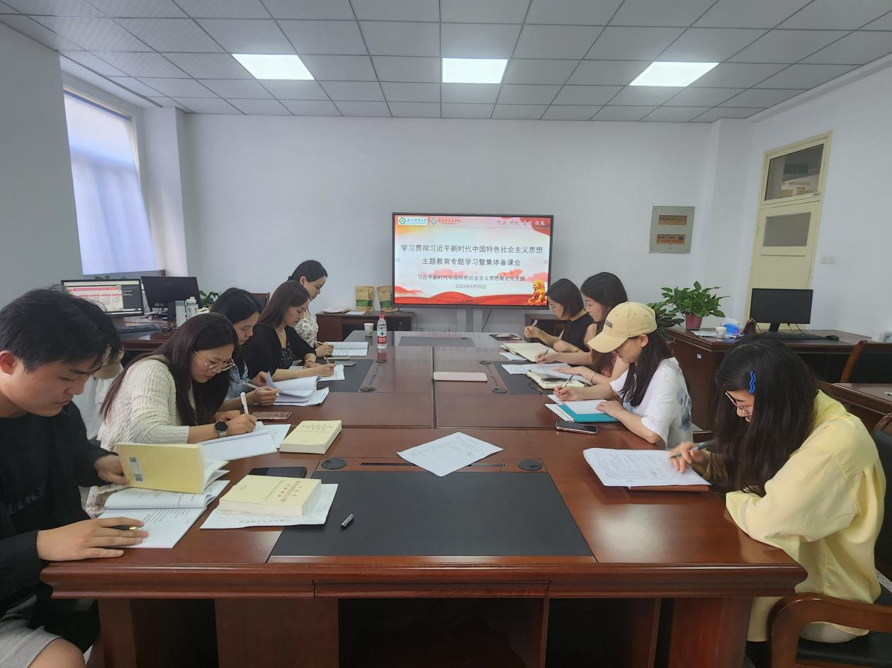 本网讯 6月20日下午,习近平新时代中国特色社会主义思想概论党支部在人文楼308室召开学习贯彻习近平新时代中国特色社会主义思想主题教育暨集体备课会。党支部全体教师参加了此次会议。学院党委副书记、纪委书记、副院长袁修雨参加学习,党支部书记王晶晶主持会议。