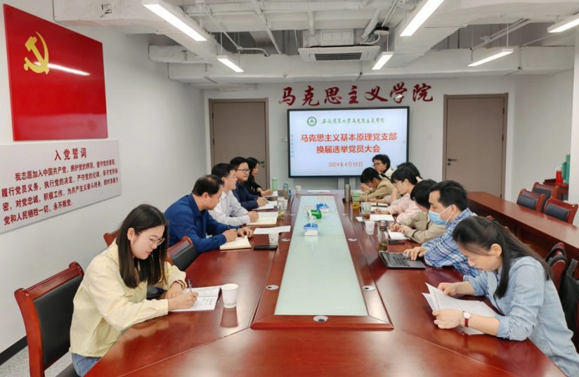 本网讯 4月18日上午,马克思主义基本原理党支部开展“一月一主题”学习暨换届选举党员大会。学院党委书记孙超、党支部全体党员教师参加此次会议,会议由党支部书记徐玉祺主持。
