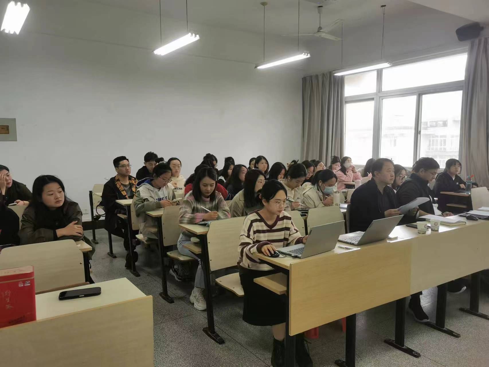 本网讯 为不断提升我院研究生学术研究能力,营造学术创新氛围,11月10日上午,我院在人文楼605教室举办本学期思想政治教育方向论文分享会。本次会议特邀请黄洪雷教授、陈敬宇副教授作为点评嘉宾,学院2022、2023级思想政治教育方向硕士研究生,2023级农村发展专业硕士研究生积极参加此次分享会。