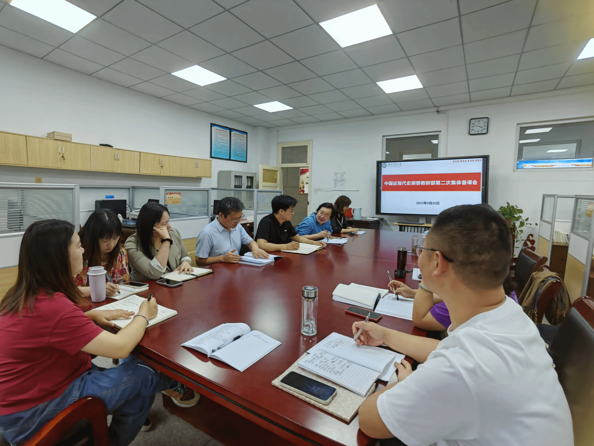 本网讯 9月21日下午,中国近现代史纲要教研部在人文楼303室举行2023-2024学年第一学期第二次集体备课活动。学院党委副书记、副院长袁修雨及教研部部分教师参加了会议,会议由党支部书记、教研部主任颜莉主持。