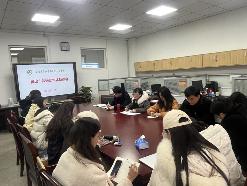 本网讯 12月13日下午,毛泽东思想和中国特色社会主义理论体系概论教研部在马克思主义学院303室开展集体备课会暨“一月一主题”学习会,参与本学期毛泽东思想和中国特色社会主义理论体系概论课教学的授课教师参加会议,会议由周丽主持。