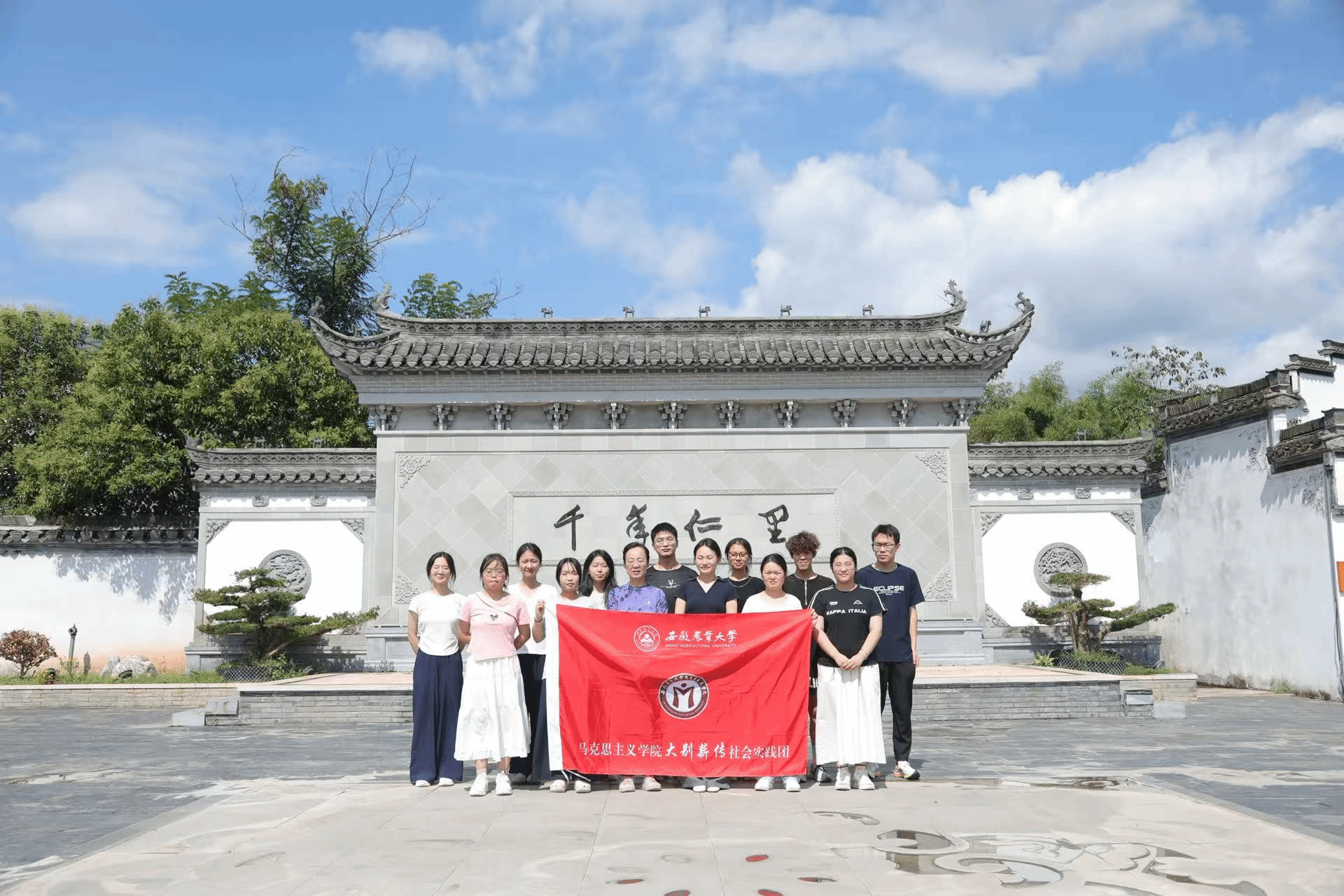本网讯 为深入弘扬中华优秀传统文化,筑牢当代大学生文化自信的根基,推动思政课理论教学与社会实践深度融合,7月27日,马克思主义学院教师颜莉、常辰带领“大别薪传”社会实践团赴安徽省“大思政课”实践教学基地(宣城)——仁里古村进行现场教学,沉浸式感受先贤智慧的千年回响。