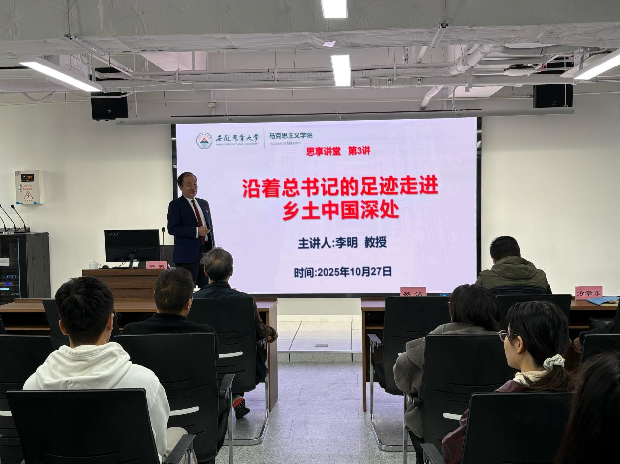 本网讯 10月27日,中国农业大学马克思主义学院教授、博士生导师李明应邀为我院“思享讲堂”作题为“沿着总书记的足迹走进乡土中国深处”的专题学术报告,讲座由院长苏洁主持,学院师生70余人参加。