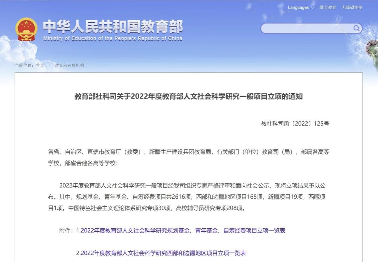 本网讯 9月下旬,2022年度教育部人文社科项目和国家社科基金立项结果相继公布。我院张传文教授主持的“零工类型农民工的社会保障政策优化研究”(项目编号:22BKS149)获国家社科基金一般项目立项,徐玉祺副教授主持的“马克思主义生态正义观视域下城乡空间融合创新机制研究”(项目编号:22YJC710079)获教育部人文社科青年项目立项。马克思主义学院自2016年5月成立以来,已先后获得3项国家社科基金和3项教育部课题立项资助,本年度同时获得2项国家级项目实现了新的突破,这也是我院连续第5年获得国家级项目资助。