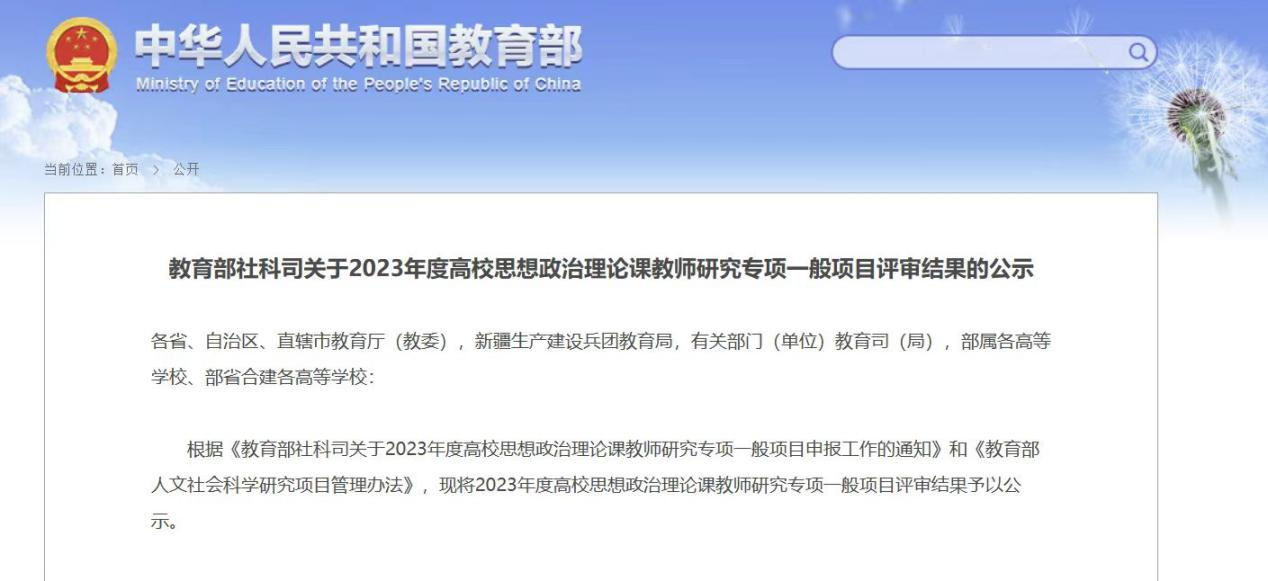 本网讯 近日,教育部社科司公示2023年度高校思想政治理论课教师研究专项一般项目评审结果,我院副教授、博士颜莉主持的课题《对话安徽名人:“中国近现代史纲要”课体验式实践教学模式研究》成功立项教学研究项目。副教授、博士王晶晶主持的课题《高校思政课“融通活化”教学模式创新与实践研究——基于“习近平新时代中国特色社会主义思想概论”课程的认识和思考》成功立项优秀中青年思政课择优资助项目。本年度马院同时获得两项教育部课题立项资助,实现了新的突破,展示了我院青年教师良好的综合素质和教学研究能力,这也是我院自2018年以来连续6年获得国家级项目资助。