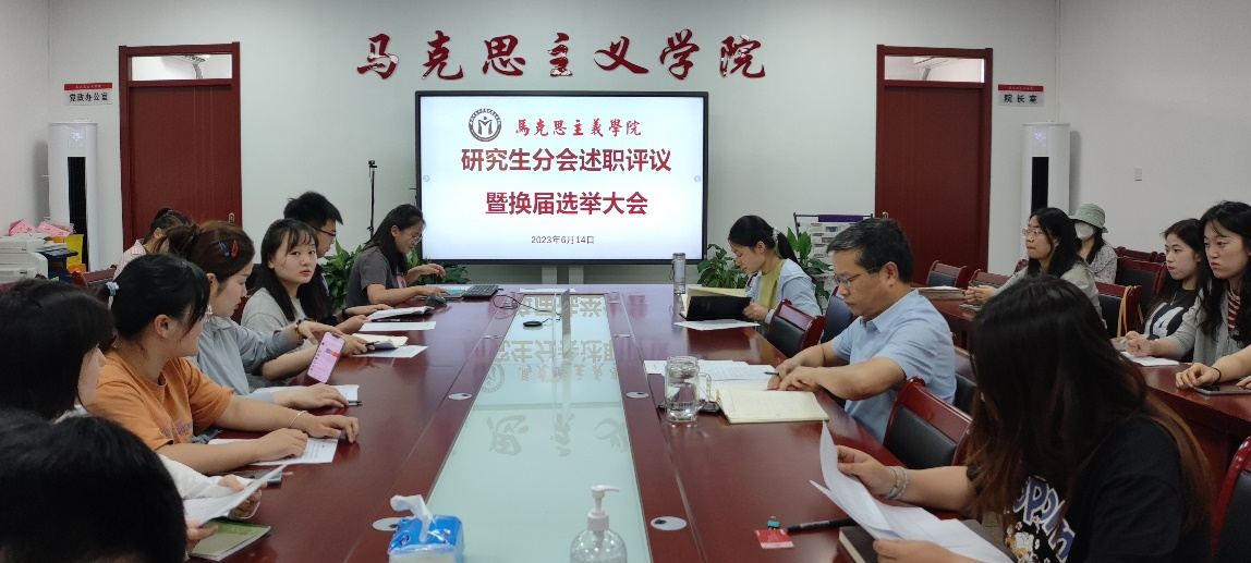 本网讯 为响应团中央、全国学联印发的《关于推动高校学生会(研究生会)深化改革的若干意见的通知》要求,进一步加强马克思主义学院研究生分会组织建设,规范学生干部的考核、培养和监督机制,2023年6月14日下午,安徽农业大学马克思主义学院在人文楼302召开研究生分会述职评议暨换届选举大会。学院党委副书记、纪委书记、副院长袁修雨,团委副书记金雨蓬,专职辅导员孙刘琴以及研究生分会全体成员参加会议。本次会议由学院团委书记徐梦琦主持。