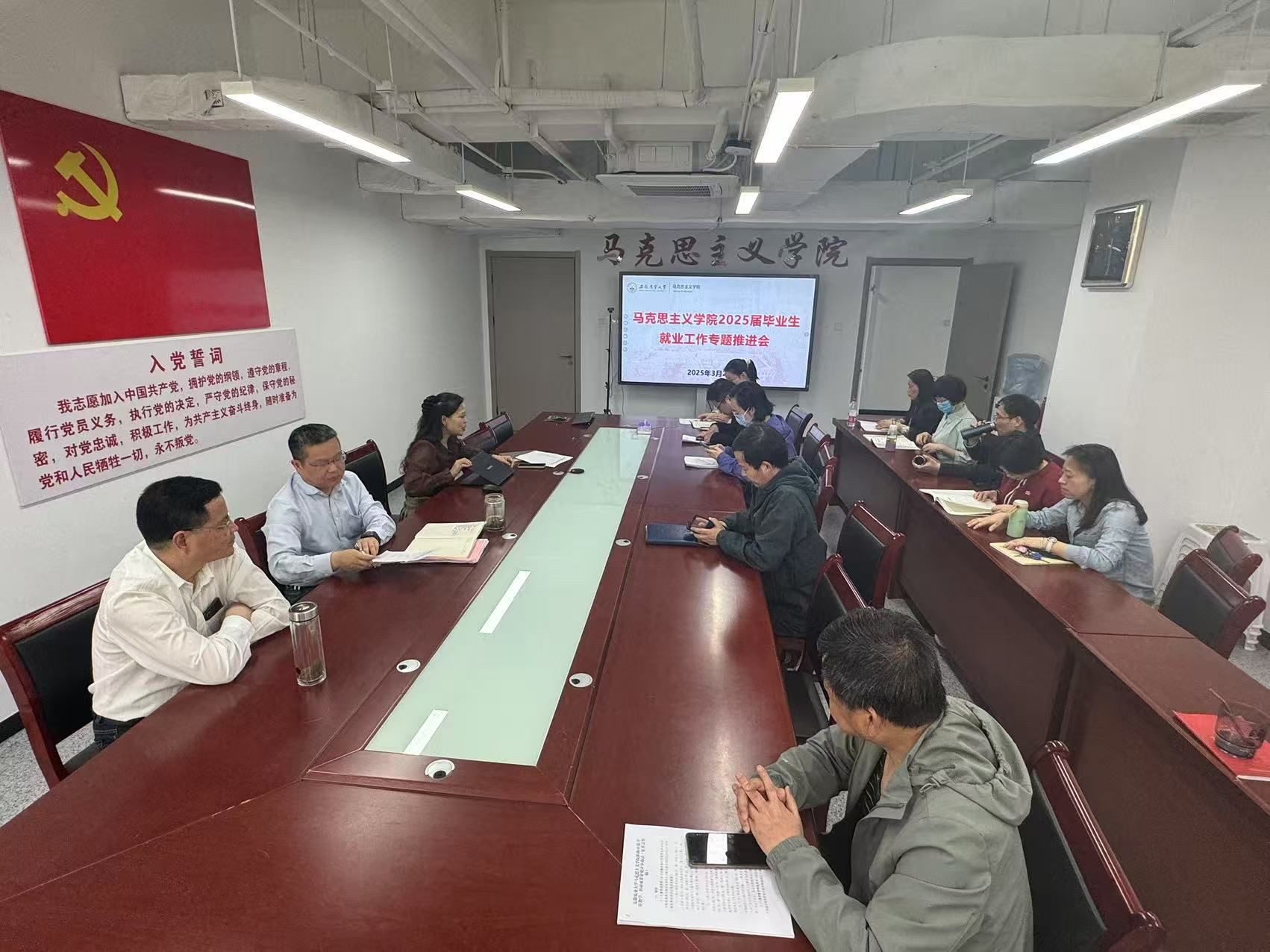会议强调,一要提高政治站位。就业工作既是一项政治任务,也是一项民生工程,学院要把就业工作摆在更加突出的位置。二要树牢“一盘棋”意识,要建立导师、就业联络员、辅导员、学院领导相互联络协调工作机制,形成学院就业工作一盘棋,通过周推进、月调度,多措并举地推进2025届毕业生就业工作。三要精细帮扶。学院要建立“一人一档”动态台账,关注重点学生就业群体,导师和班主任要主动担当作为,压实主体责任,针对毕业生群体中存在的困难、困惑,要进一步开展精细化指导与精准化帮扶,耐心引导帮助毕业生顺利毕业就业。